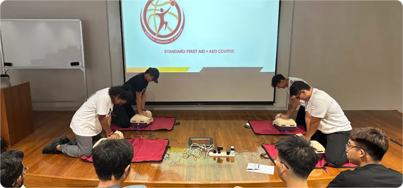 This course is available in both Blended and Face To Face lessons and is conducted by Basketball Association of Singapore. CPR ( Hands Only) + AED portion of this course is accredited by SRFAC.